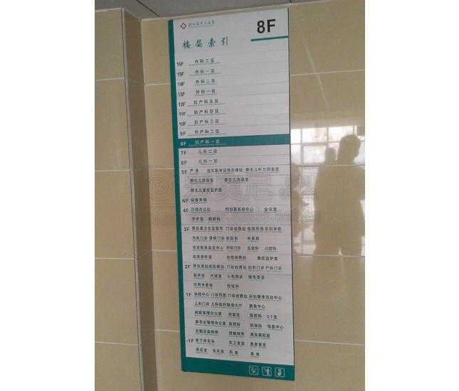 服務內容:醫(yī)院樓宇標識,道路指引標識,醫(yī)院戶外總圖,樓層索引,平面分布圖,專家介紹欄,宣傳欄,功能室,樓層號,科室名稱牌等