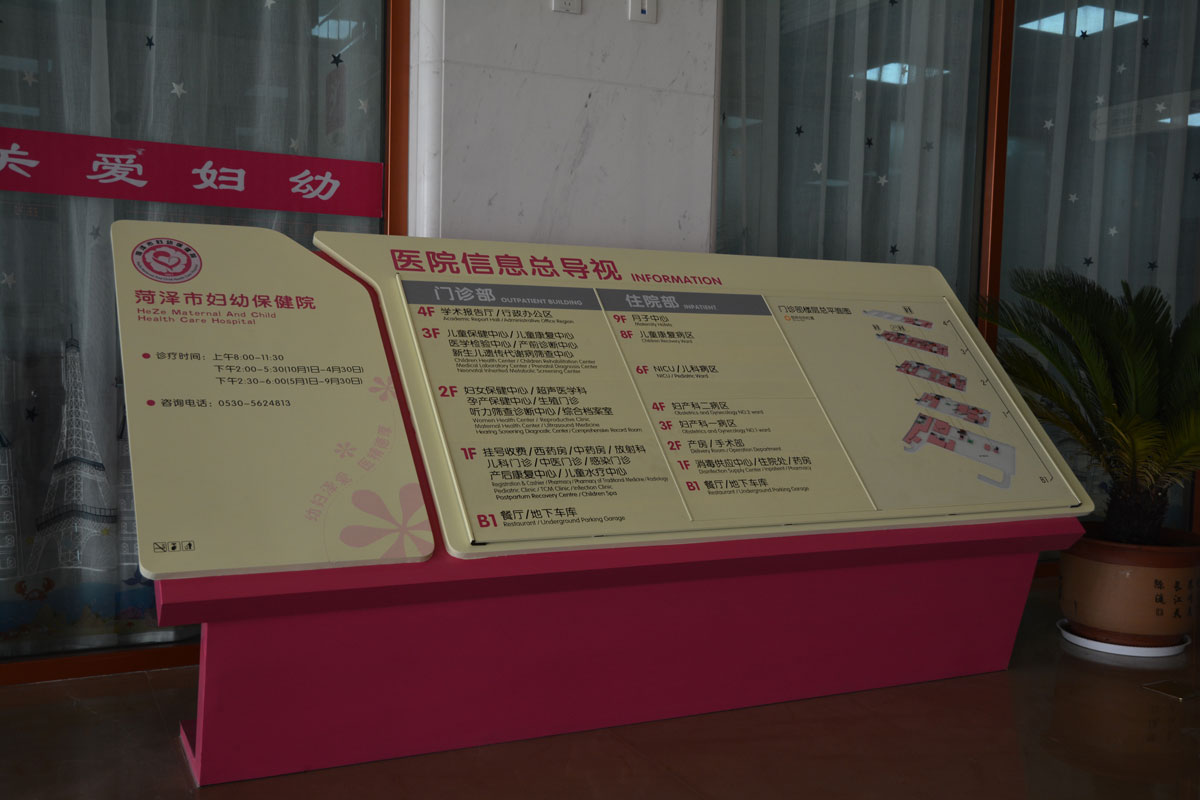 服務內容:醫院樓宇標識,道路指引標識,醫院戶外總圖,樓層索引,平面分布圖,專家介紹欄,宣傳欄,功能室,樓層號,科室名稱牌等